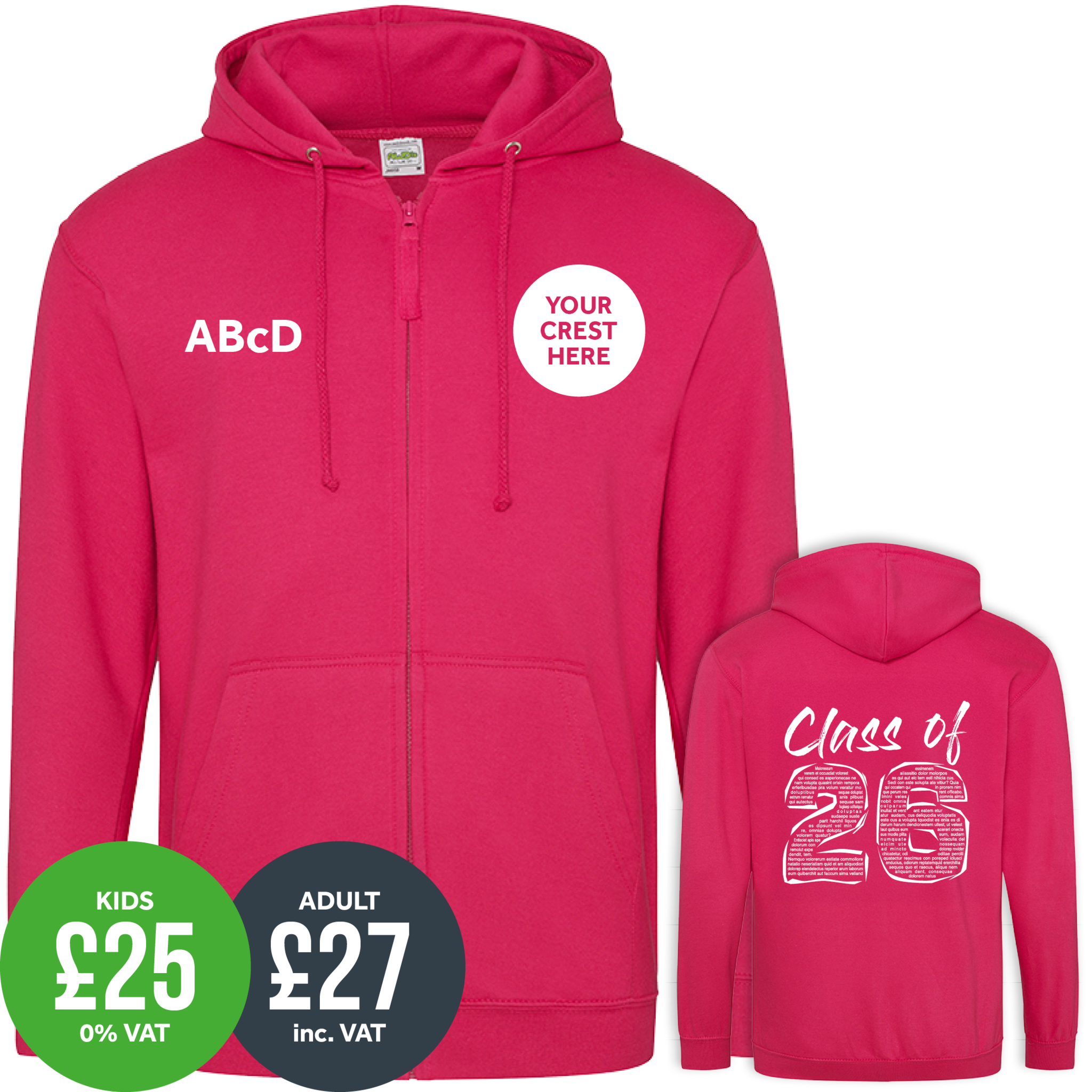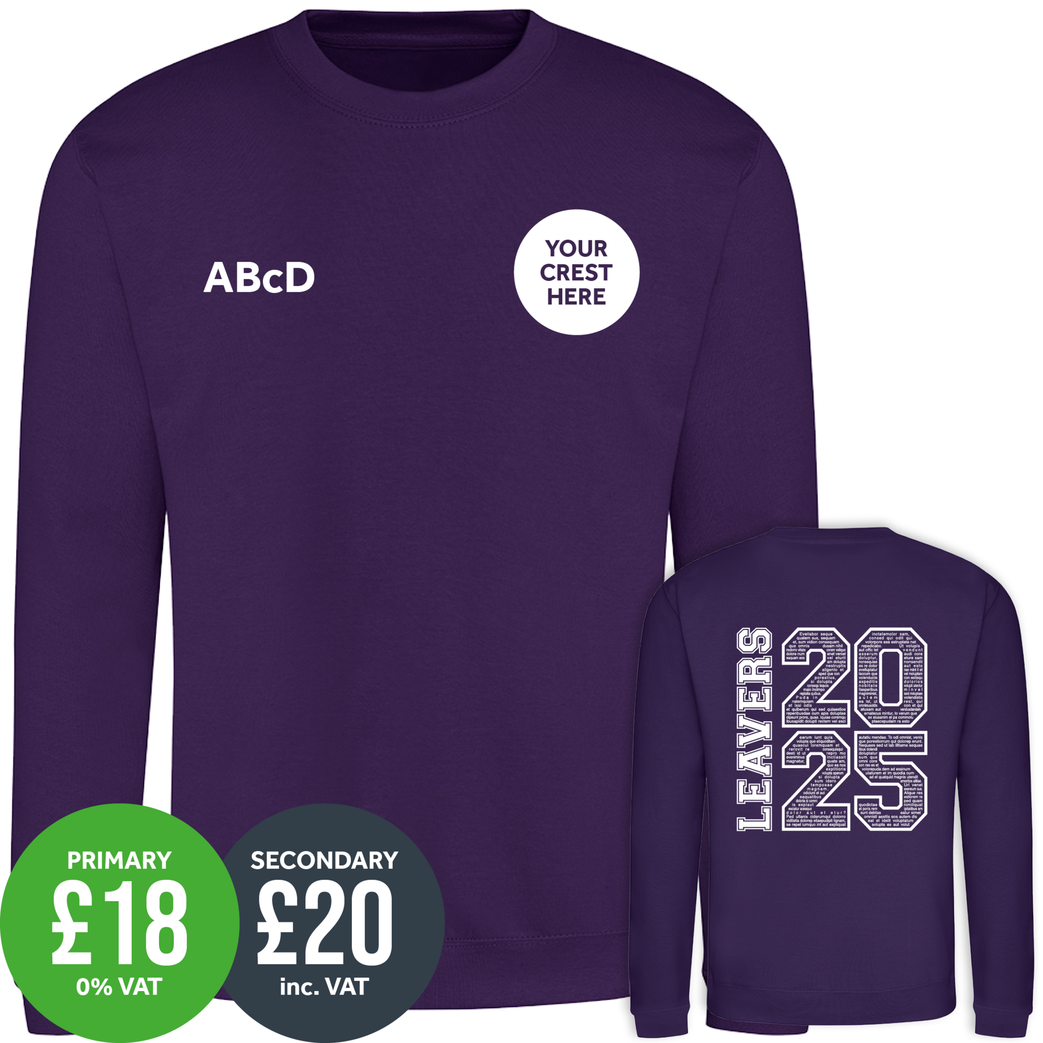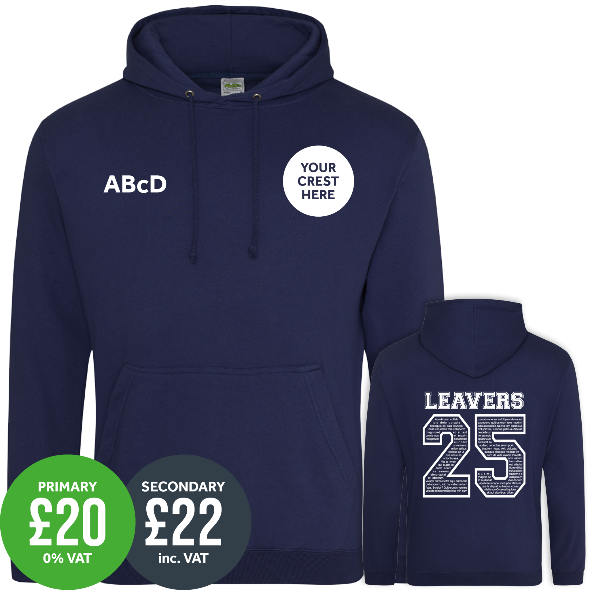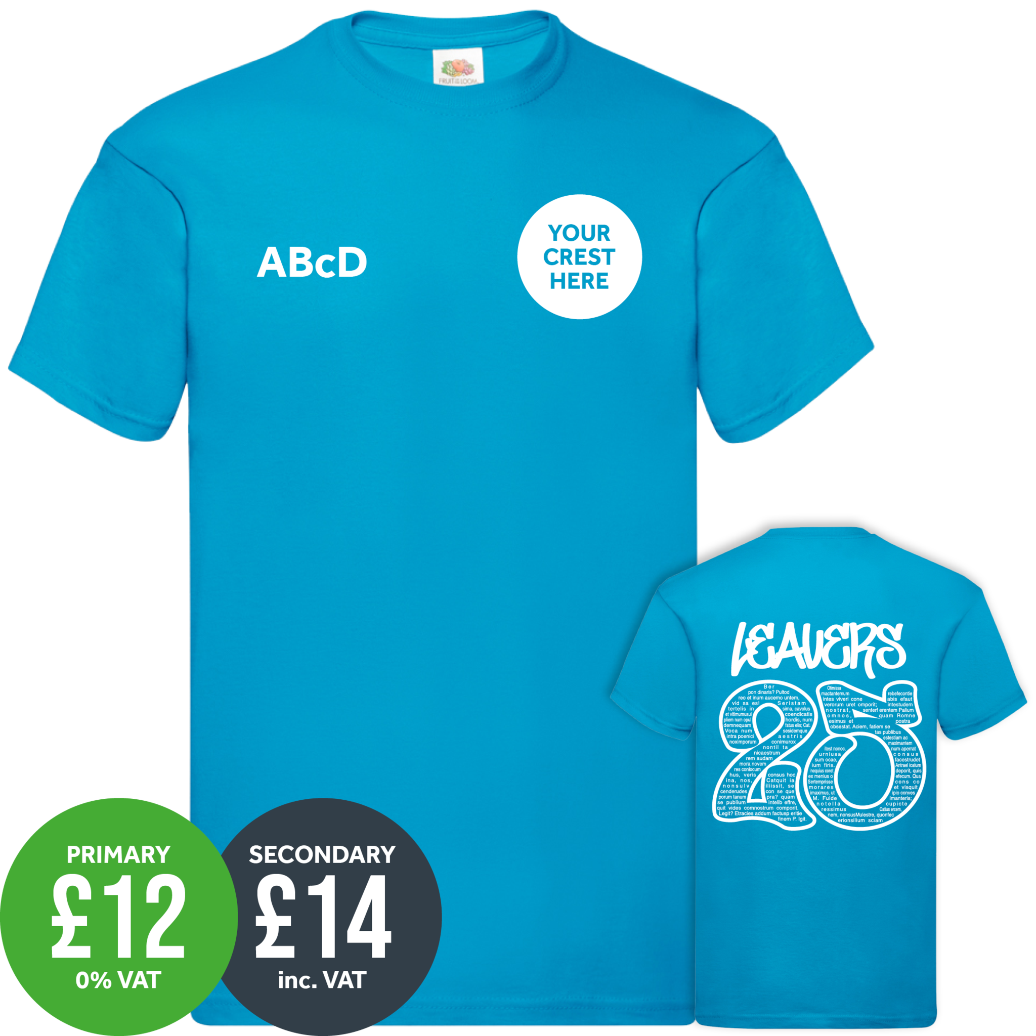 All t-shirts will come preprinted with your school logo and Leavers design.